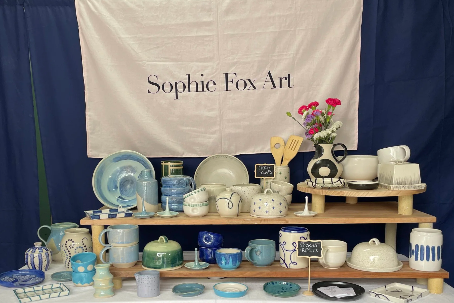 Sophie Fox ceramics are available in person at Markets or via private appointment in her studio.